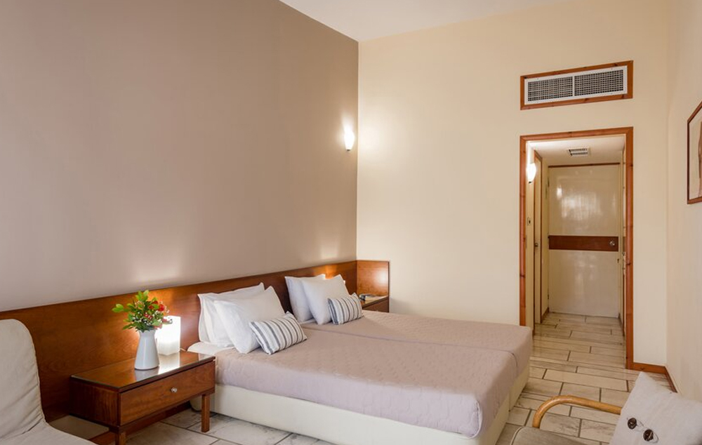 Standard Room Sea View - oko 22m2 sa pogledom na more, lociran je u glavnoj zgradi. Opremnjen je sa francuskim ili dva singl ležaja i sofom. Namenjen za 2-4 osobe.