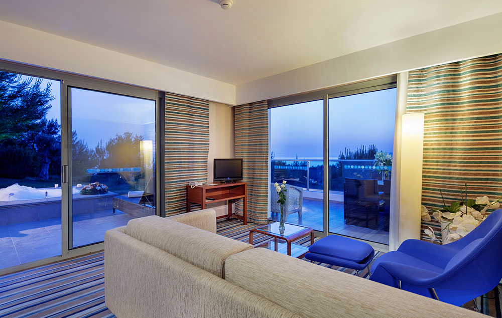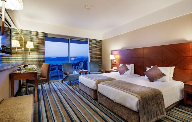 Hotelske sobe sa pogledom na kopno ili more se nalaze u glavnoj zgradi i imaju 25m2. Sobe poseduju klima uređaj, telefon, SAT TV, sef, mini bar, set za kafu i čaj, kupatilo, fen za kosu, balkon ili terasa. Maksimalno borave 3 odrasle osobe. Junior club sobe se nalaze u bungalovima i imaju 35m2. Sastoje se od jedne spavaće sobe i dva kupatila. Isto su opremljene kao hotelske sobe. Maksimalno borave 3 odrasle osobe i 1 dete do 13 godina. Superiorsobe se nalaze u glavnoj zgradi i imaju 30m2-40m2. Isto su opremljene kao hotelske sobe. Maksimalno borave 3 odrasle osobe i 1 dete do 13 godina. Club family sobe se nalaze u bungalovima i imaju 49m2. Sastoje se od dve sobe i dva kupatila. Isto su opremljene kao hotelske sobe. Maksimalno borave 4 odrasle osobe i 1 dete do 13 godina.
