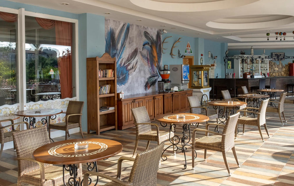 Hotelski sadržaj: Recepcija, glavni restoran, a la carte restoran, bar pored bazena, bar na plaži, bazen za odrasle, dečiji bazen, dva tobogana, dečije igralište, dnevnu animaciju, večernji mini disko, fitness, tursko kupatilo, saunu, stoni tenis, bilijar, wi fi se doplaćuje.