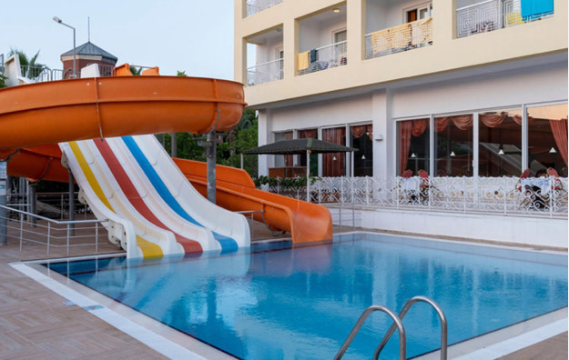 Položaj: Hotel je udaljen 120km od Antalijskog aerodroma i 100m od centra Alanje. Poslednji put renoviran 2019. godine. Preko puta hotela se nalazi aqua park Alanja.