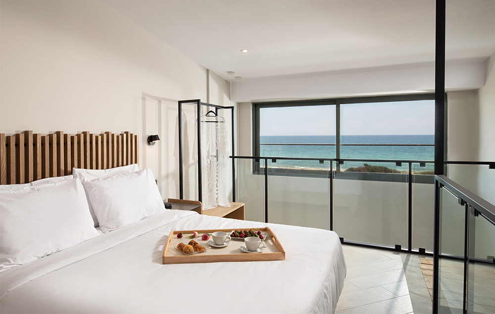 Junior Suite Sea Front-35 m2, kombinovani dnevni boravak i spavaća soba, sa francuskim ili dva odvojena kreveta i sofom na razvlačenje.