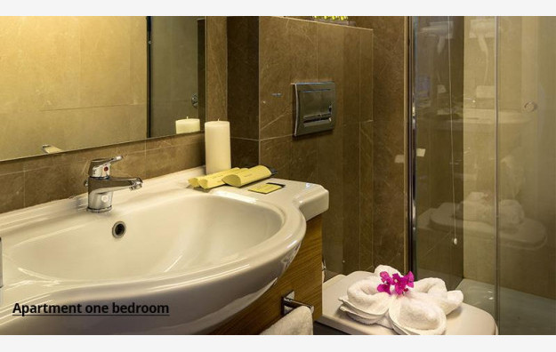 Sve sobe poseduju: klima uređaj, telefon, Wi-Fi internet, SatTV, fen za sušenje kose, sef (uz doplatu), čajnu kuhinju, mini frižider, ketler, set za kafu i čaj, kupatilo sa tuš kabinom ili kadom, balkon ili terasu. Tipovi soba: Studio pogled planina površine je oko 20 m² i namenjen je za smeštaj maksimalno dve odrasle osobe i jedno dete (tri odrasle osobe se ne mogu smestiti u ovaj tip sobe), sa opremljenom čajnom kuhinjom i pogledom na bazen ili vrt, sastoje se od francuskog ležaja ili dva standardna ležaja, dok dodatni ležaj za dete može biti pomoćni. Bebi krevetac je na raspolaganju gostima besplatno (obavezno najaviti prilikom rezervacije). Jednosobni apartman je površine oko 32 m², a sastoji se iz spavaće sobe sa dva odvojena ležaja ili bračnim ležajem i dnevnog boravka sa dve sofe i čajnom kuhinjom. Namenjen je za maksimalno dve odrasle osobe i dvoje dece ili četiri odrasle osobe, sa pogledom na bazen ili dvorište. Sobe tipa “studio’’ i ’’apartman ’’ su po svojoj osnovnoj strukturi dvokrevetne, dok ostali ležajevi mogu biti pomoćni. Bebi krevetac je na raspolaganju gostima besplatno (obavezno najaviti prilikom rezervacije).