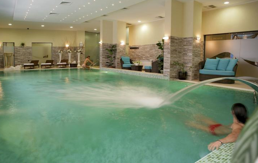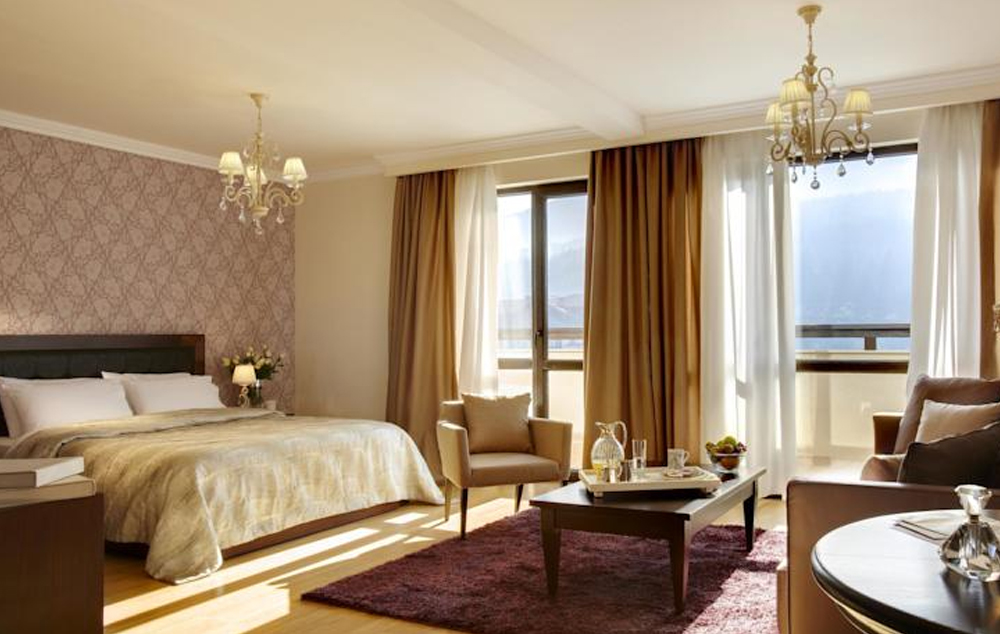 Dodatni sadržaj: sef, room service, lobby bar ,salon lepote, dva restorana, konferencijska sala, bilijar, spa centar (sauna, parno kupatilo, masaža, đakuzi), teretana, zatvoreni bazen, igraonica za decu , šatl bus do gondole