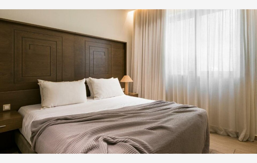 Grand Suite Side Sea View - Elegantno namešten veliki apartman od 59 m² s prostranim dnevnim boravkom s 2 kauča na razvlačenje, udobnom spavaćom sobom s bračnim krevetom i modernism kupatilom sa tušem, kao i privatnom nameštenom verandom s pogledom na vrt i more.