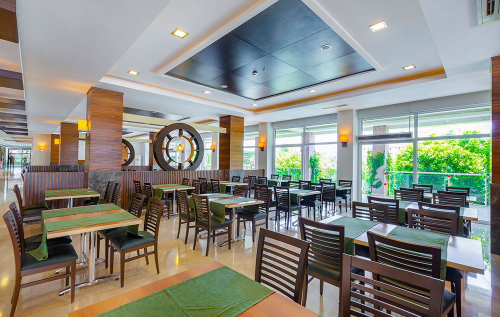Hotelski sadržaj: Hotel poseduje glavni restoran, 2 a la carte restorana (turski i riblji-korišćenje jednog besplatno u toku boravka uz obaveznu rezervaciju), 2 bara, spoljašnji i unutrašnji bazen za odrasle i decu, večernju animaciju, dečiji klub 8za decu od 4-12 godina), dečija igraonica, mini disko, tursko kupatilo, sauna, masaže, fitness, aerobic, stoni tenis, bilijar, boćanje, pikado, wi fi.