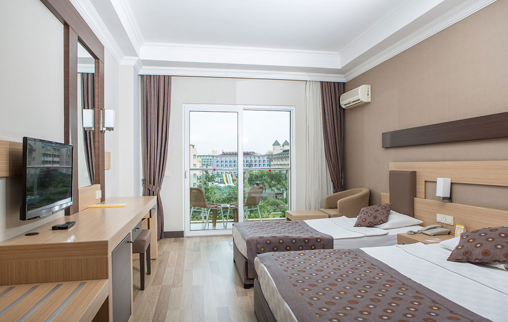 Hotelski sadržaj: Recepcija, 2 glavna restorana, 2 a la carte restorana, dijetalni meni, 13 barova, 2 unutrašnja i 5 spoljašnjih bazena, 5 dečijih bazena, 6 đakuzija, akva park sa 19 tobogana (10 dečijih), bioskopska sala, dnevne i večernje animacije, mini klub (za decu od 4-12 godina), teenage klub (za decu od 13-17 godina), mini disko, igraonica, aerobic u vodi, bocanje, pikado, stoni tenis, odbojka na pesku, teniski teren, košarka, tursko veče, hamam, sauna, parna soba, teretana, bilijar (uz doplatu), wi fi (u lobiju).