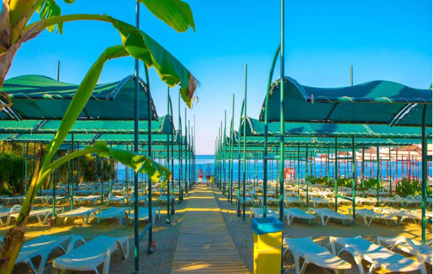 Plaža: Hotelska plaža (deo na Kleopatrinoj plaži )je udaljena 500m od hotela. Gostima je na raspolaganju shuttle bus koji vozi do plaže. Ležaljke i suncobrani koriste bez doplate. Peškiri za plažu su besplatni, svaka zamena se dodatno plaća. Bar na plaži se dodatno plaća.