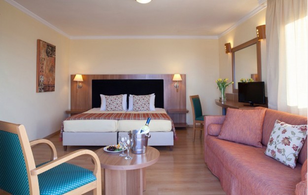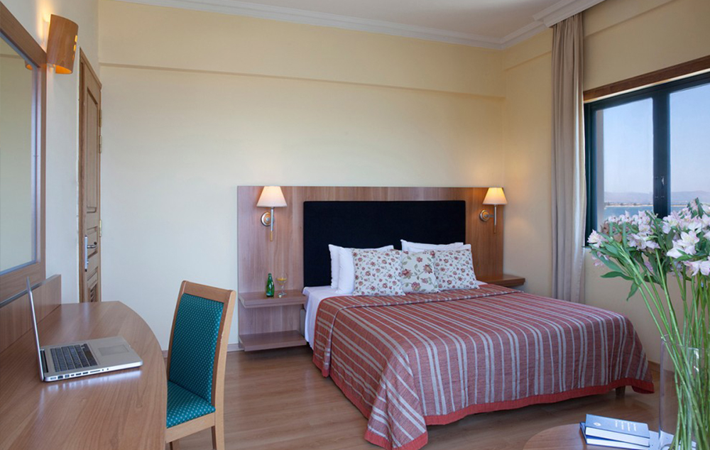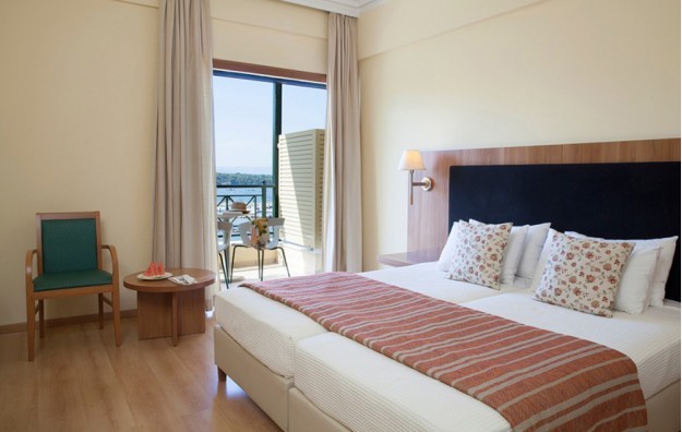Superior Room Side Sea View-22 m2, sa bračnim ili dva odvojena kreveta i pomoćnim ležajem za 3. osobu, sa pogledom na more sa strane.