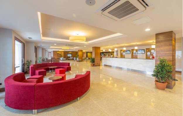Sadržaj: Recepcija, lobi, glavni restoran, snack restoran pored bazena, snack restoran na plaži, a la carte restoran, 3 bara, kafeterija, 2 spoljna bazena - od kojih je 1 na plaži, 2 dečija bazena sa toboganima - od kojih je 1 na plaži, mini klub za decu, mini disco, spa centar, tursko kupatilo, sauna, masaža, parno kupatilo, fitness centar, stoni tenis, odbojka na plaži, pikado, sportovi na vodi, usluga pranja i peglanja veša, doktor na poziv, market, fotograf, frizer, telefon i fax,