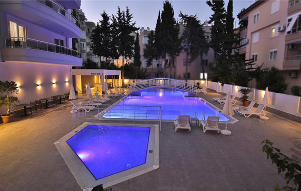 Položaj: Hotel je udaljen 120km od Antalijskog aerodroma i 100m od centra Alanje. Poslednji put renoviran 2019. godine. Preko puta hotela se nalazi aqua park Alanja.