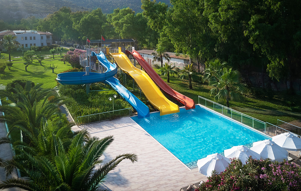 Hotelski sadržaj: glavni restoran, 3 a la carte restorana (turski, italijanski – jednom nedeljno besplatno i riblji – uz doplatu), 4 bara, 4 spoljašnja bazena (1 bazen sa 3 tobogana), unutrašnji bazen, dečiji bazen, sauna, tursko kupatilo, parno kupatilo, masaža, aerobik u vodi, dečiji klub (4-12 godina), igralište, internet kafe, 3 konferencijske sale, stoni tenis, sportovi na vodi, 2 teniska terena, odbojka na pesku, aerobik u vodi, futsal, košarka, mini golf, teretana, diskoteka, dnevna i večernja animacija, wifi.
