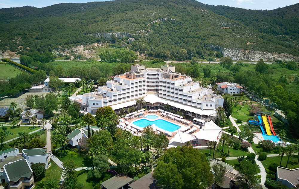 Položaj: Hotel je udaljen 12 km od Kušadasija i 130km od aerodroma u Bodrumu i nalazi se na prelepoj peščanoj plaži. Izgradjen je 1995. godine, a poslednji put je delimično renoviran 2023. godine. Zauzima površinu od 52.000 m².