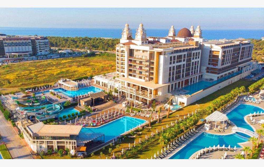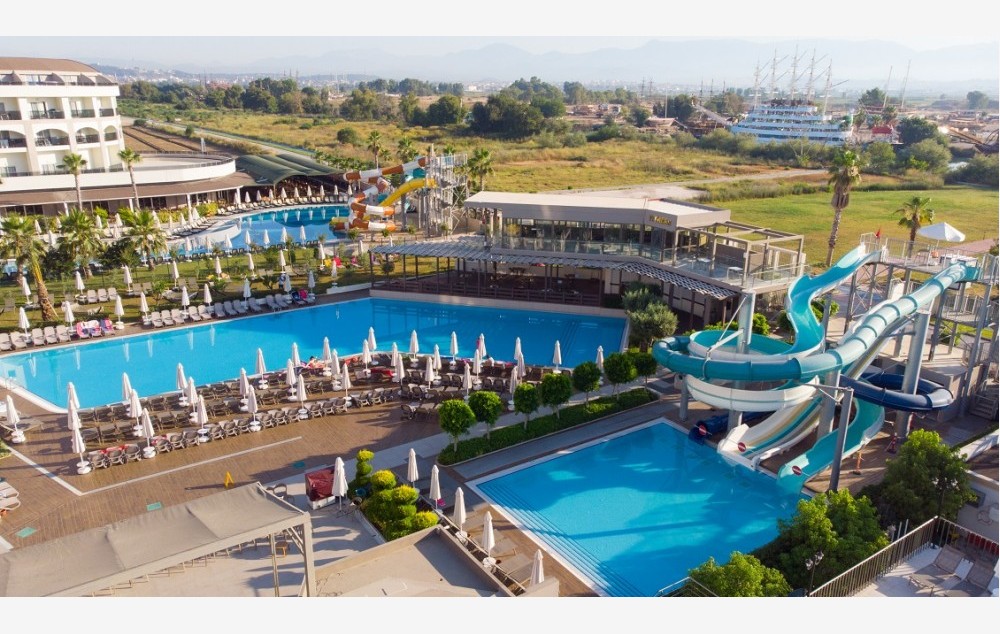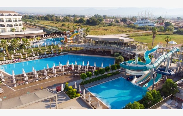 Hotelski sadržaj: Recepcija, 2 glavna restorana, 2 a la carte restorana, dijetalni meni, 13 barova, 2 unutrašnja i 5 spoljašnjih bazena, 5 dečijih bazena, 6 đakuzija, akva park sa 19 tobogana (10 dečijih), bioskopska sala, dnevne i večernje animacije, mini klub (za decu od 4-12 godina), teenage klub (za decu od 13-17 godina), mini disko, igraonica, aerobic u vodi, bocanje, pikado, stoni tenis, odbojka na pesku, teniski teren, košarka, tursko veče, hamam, sauna, parna soba, teretana, bilijar (uz doplatu), wi fi (u lobiju).