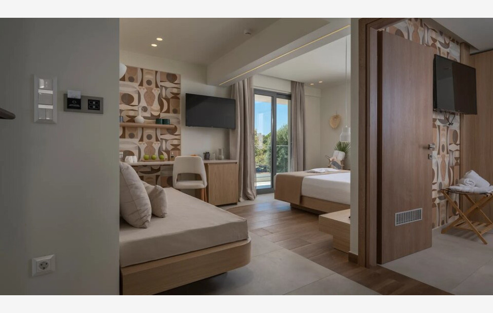 Comfort Room Sea View - Comfort soba s pogledom na more, smeštena na 2. spratu i površine 23 m², može primiti do 3 odrasle osobe u jednom bračnom krevetu i jednoj sofi na razvlačenje za jednu osobu.