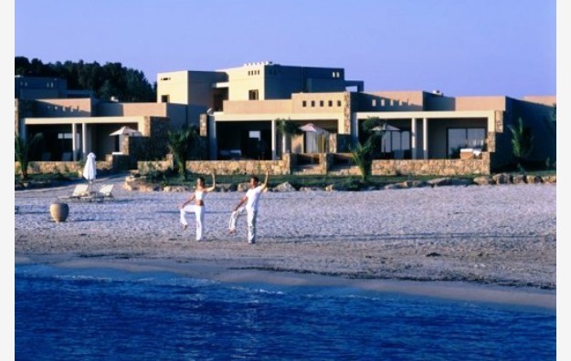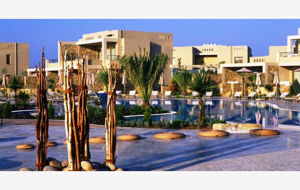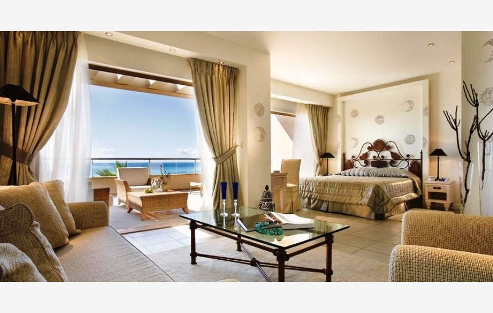 Deluxe Suite Beachfront-Elegantno uređen, sastoji se od dnevnog boravka, spavaće sobe sa odvojenim garderoberom, dva kupatila i privatnog vrta koji nudi savremeni dizajn i udobnost. Prozori od poda do plafona u dnevnoj sobi i spavaćoj sobi gledaju na veličanstveno Egejsko more. Kreveti Dream opremljeni luksuznim dušecima za dodatnu udobnost, luksuzna posteljina i izbor jastuka, međunarodni telefon sa direktnim biranjem, DVD/CD plejer, 2 višekanalna satelitska televizora sa ravnim ekranom i integrisani muzički kanali, BOSE priključna stanica za iPod (dostupan je unapred instaliran iPod na recepciji), fen za kosu, mini bar, elektronski sef (besplatno), pribor za pripremu kafe i čaja, Nespresso aparat, klima / grejanje (pojedinačno podesivo po sobi), besplatan vi-fi. Mermerno kupatilo sa kadom, ogledalo za šminkanje, dva umivaonika i dodatno kupatilo za goste sa tušem. Luksuzni toaletni pribor. Pod od pločica ili mermera sa tepihom. Terasa sa privatnom baštom (100m2) i nameštaj od ratana uključujući dve ležaljke, sofu, suncobran, dva stolića i dve fotelje. Deluke suite zatvorenog prostora 90m2.