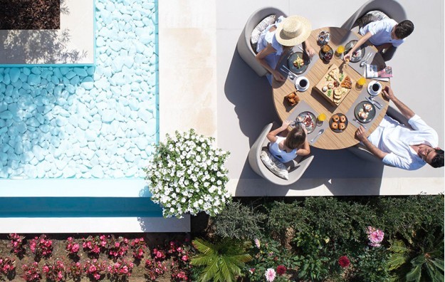 Deluxe Junior Suite Private Garden Sea View-Velikodušno prostran stan niske spratnosti, koji nudi savremeni dizajn i udobnost. Panoramski prozori pružaju neprekidan pogled na Egejsko more, dok privatna bašta sa luksuznim nameštajem pruža spokojno okruženje za opuštanje i opuštanje. Prostrano kupatilo dolazi sa ekskluzivnim priborom Anne Semonin. Terasa sa luksuznim nameštajem, 2 ležaljke, stolić i stolice, pod od pločica, unutrašnji prostor 44m2 / spoljna terasa sa baštom cca. 40m2. Svi apartmani imaju sofisticiran i elegantan dizajn, sa suptilnim dodirima luksuza.