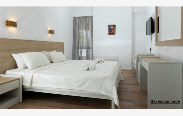 Hotel ima 130 delimično renoviranih soba koje su uređene tako da pruže prijatan boravak svim gostima. U svom sastavu imaju kupatilo, fen, centralni klima uređaj (uključeno u cenu), mini frižider, SAT TV, Wi-Fi (uključen u cenu) i balkon. Namenjene su za smeštaj 2-3 osobe (imaju francuski ili dva standardna ležaja, dok je treći ležaj pomoćni). Sve sobe su po svojoj osnovnoj strukturi dvokrevetne, dok ostali ležajevi mogu biti pomoćni. Krevetac za bebe je na raspolaganju gostima besplatno (obavezno najaviti prilikom rezervacije).