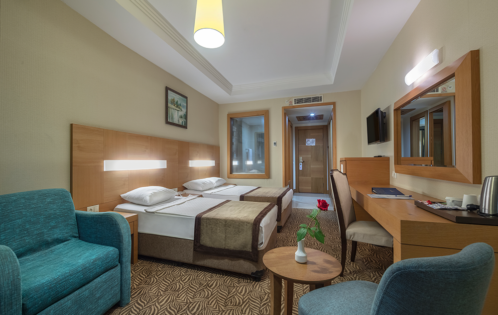 Položaj: Hotel je udaljen 120km od Antalijskog aerodroma i 100m od centra Alanje. Poslednji put renoviran 2019. godine. Preko puta hotela se nalazi aqua park Alanja.