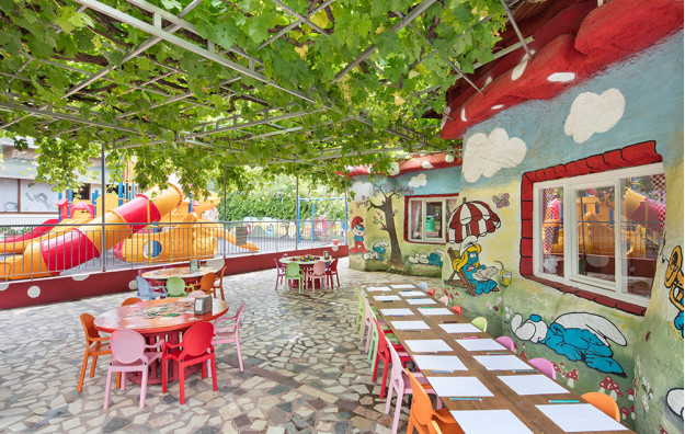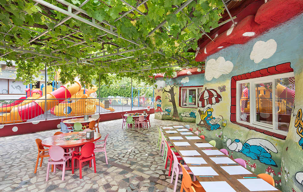 Hotelski sadržaj: Recepcija, glavni restoran, bar pored bazena, bazen za odrasle sa toboganom i odvojenim delom za decu, spa (tursko kupatilo, sauna i masaže-sve uz doplatu).