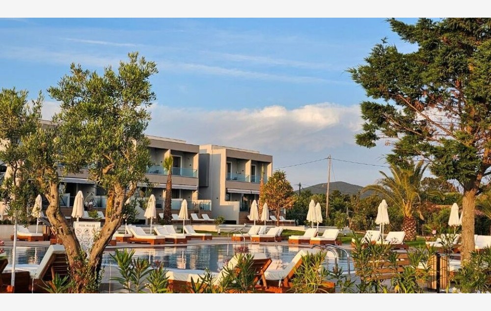 Premium Room Garden View- 20 m2, pod toplim suncem Halkidikija, ove sobe imaju bračni ili dva odvojena kreveta, sopstveno kupatilo i nameštenu terasu s pogledom na baštu.