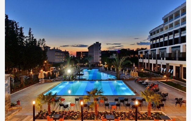 Hotelski sadržaj: Hotel poseduje glavni restoran, 2 a la carte restorana (turski i riblji-korišćenje jednog besplatno u toku boravka uz obaveznu rezervaciju), 2 bara, spoljašnji i unutrašnji bazen za odrasle i decu, večernju animaciju, dečiji klub 8za decu od 4-12 godina), dečija igraonica, mini disko, tursko kupatilo, sauna, masaže, fitness, aerobic, stoni tenis, bilijar, boćanje, pikado, wi fi.