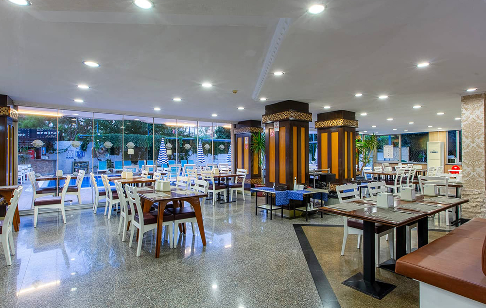 Hotelski sadržaj: Hotel poseduje glavni restoran, 2 a la carte restorana (turski i riblji-korišćenje jednog besplatno u toku boravka uz obaveznu rezervaciju), 2 bara, spoljašnji i unutrašnji bazen za odrasle i decu, večernju animaciju, dečiji klub 8za decu od 4-12 godina), dečija igraonica, mini disko, tursko kupatilo, sauna, masaže, fitness, aerobic, stoni tenis, bilijar, boćanje, pikado, wi fi.