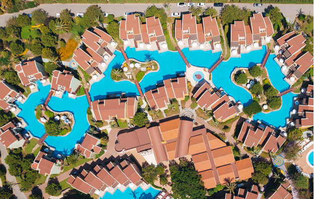 Smeštaj: Hotelski kompleks čine glavna sedmospratna zgrada i pet dvospratnih vila koje imaju ukupno 358 soba. U glavnoj zgradi se nalaze standardne sobe sa pogledom na kopno ili more i porodične sobe, dok se u vilama nalaze vila standardne sobe i vila porodične sobe. Hotel poseduje i sobe za osobe sa posebnim potrebama.