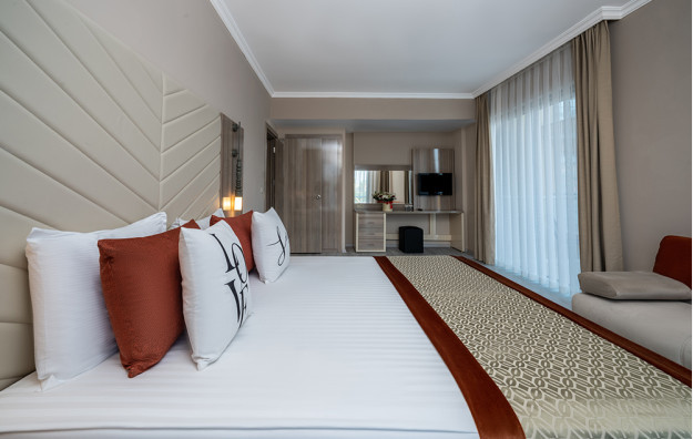 Superior sobe sa pogledom na ulicu ili bazen (20-40m²). Sadrže jedan bračni krevet, jedan singl ležaj i sofu na razvlačenje. Maksimalno mogu da borave tri odrasle osobe i jedno dete do 6 godina.