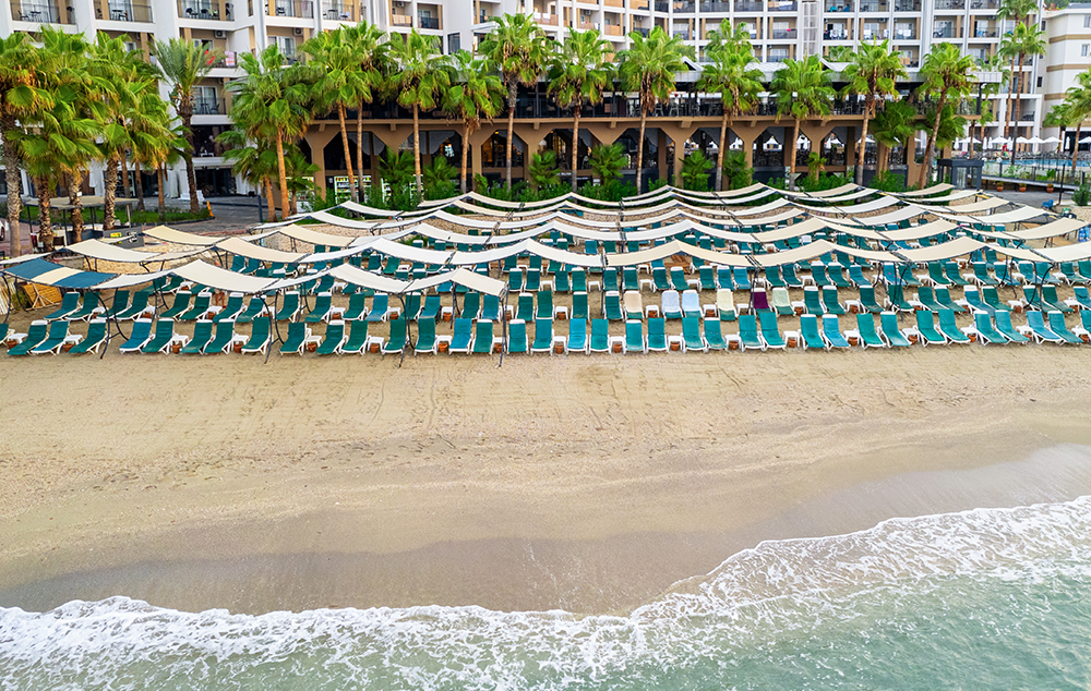 Plaža: Hotelska plaža (deo na Kleopatrinoj plaži )je udaljena 500m od hotela. Gostima je na raspolaganju shuttle bus koji vozi do plaže. Ležaljke i suncobrani koriste bez doplate. Peškiri za plažu su besplatni, svaka zamena se dodatno plaća. Bar na plaži se dodatno plaća.