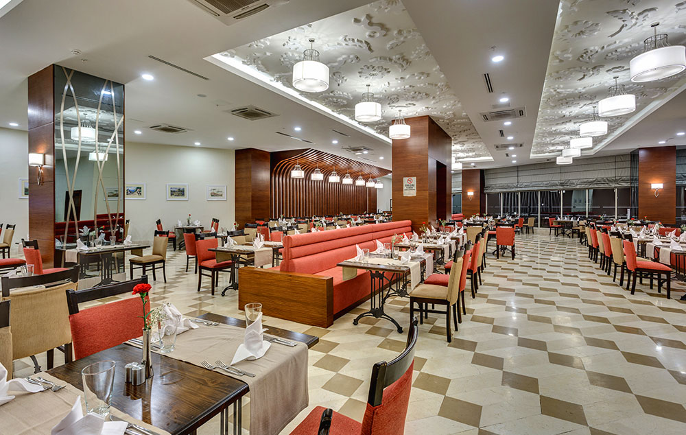 Hotelski sadržaj: Hotel poseduje glavni restoran, 2 a la carte restorana (turski i riblji-korišćenje jednog besplatno u toku boravka uz obaveznu rezervaciju), 2 bara, spoljašnji i unutrašnji bazen za odrasle i decu, večernju animaciju, dečiji klub 8za decu od 4-12 godina), dečija igraonica, mini disko, tursko kupatilo, sauna, masaže, fitness, aerobic, stoni tenis, bilijar, boćanje, pikado, wi fi.
