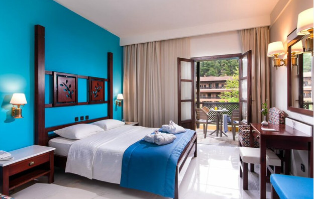 Standard Room-24 m2, sobe otvorenog plana sa bračnim ili dva odvojena kreveta, sopstvenim kupatilom sa tušem i nameštenim balkonom sa pogledom na baštu ili bazen ili bočni pogled na more.