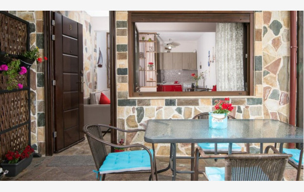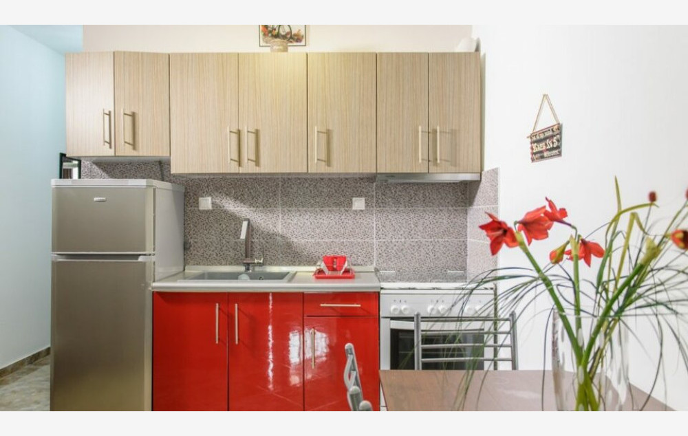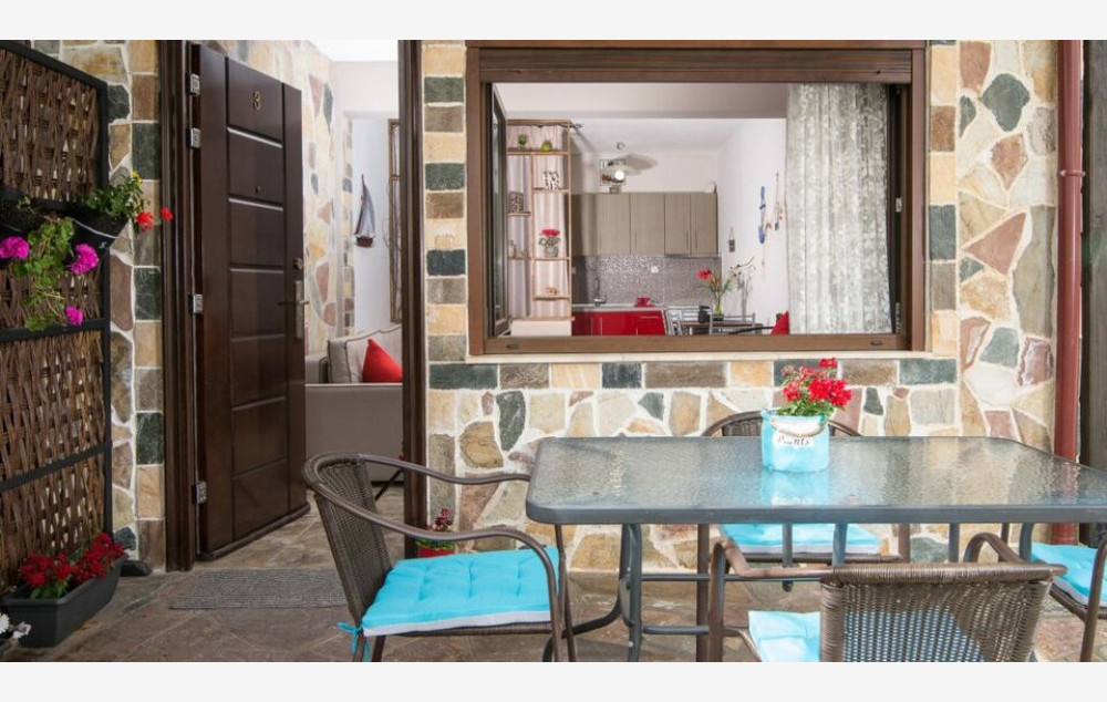 Duplex Apartment- Mezoneta na dva nivoa od 35 m2, otvorenog prostora, s velikim bračnim krevetom na gornjem nivou, čajnom kuhinjom s trpezarijom i dnevnim boravkom s kaučima na razvlačenje na drugom nivou s izlazom na namešteni balkon s pogledom na baštu.