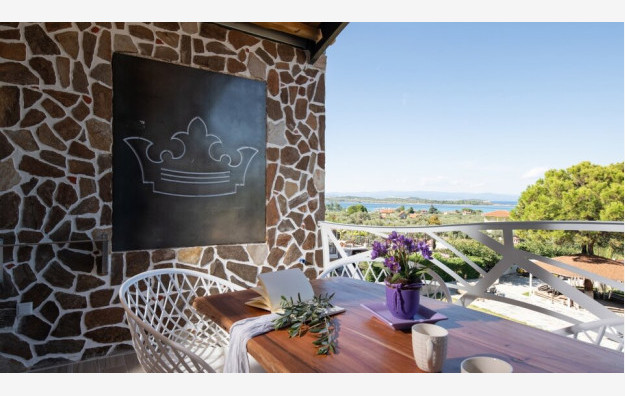 Junior Suite- 30 m2, otvorenog tipa, novoizgrađeni, apartmani, opremljeni bračnim krevetom i kaučem na razvlačenje u dnevnom boravku, malom čajnom kuhinjom (nije prikladna za kuvanje), sopstvenim kupatilom i nameštenim balkonom s pogledom na baštu i bazen.