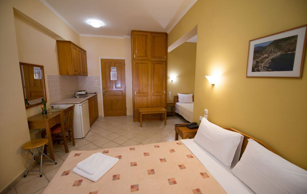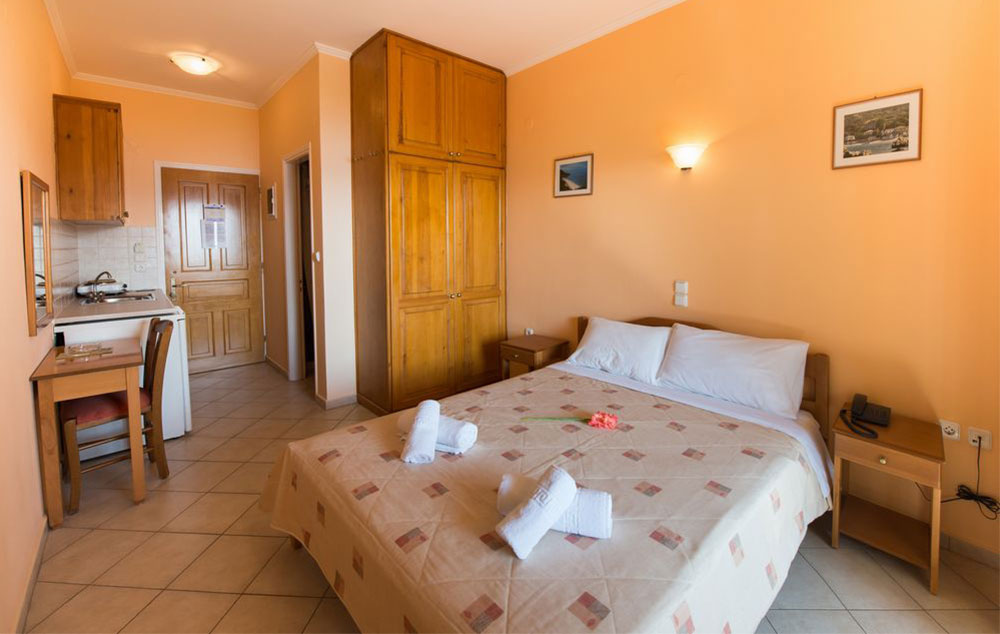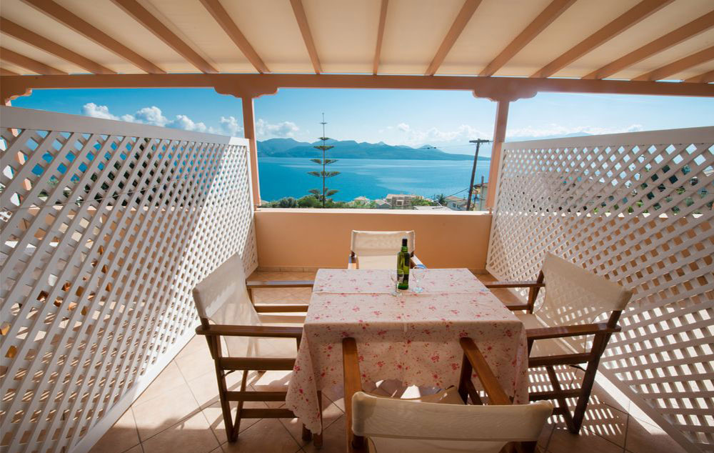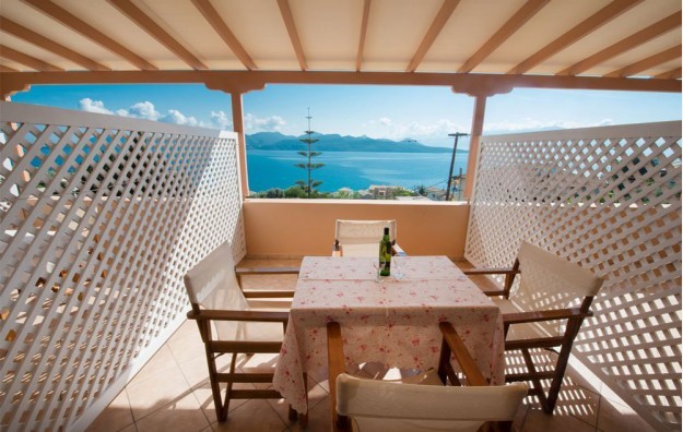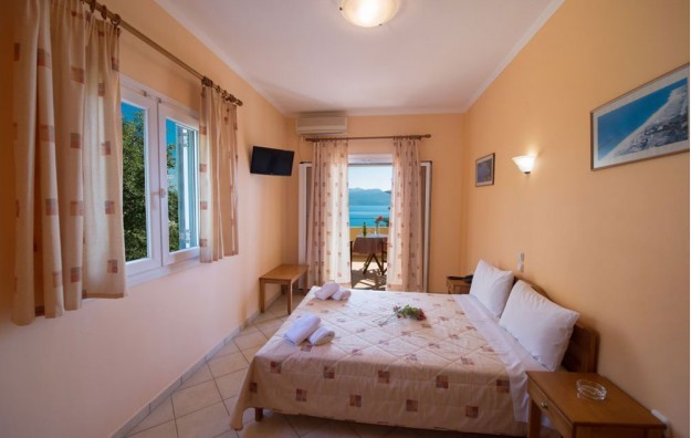 Family Apartment Sea View – Apartmani od 33 m² s terasom od 9 m², koji mogu primiti 3-5 osoba. Idealni za porodice (1 bračni krevet + 2 odvojena kreveta (moguće je dodati i dodatni krevet) s panoramskim pogledom na smaragdno jonsko more.
