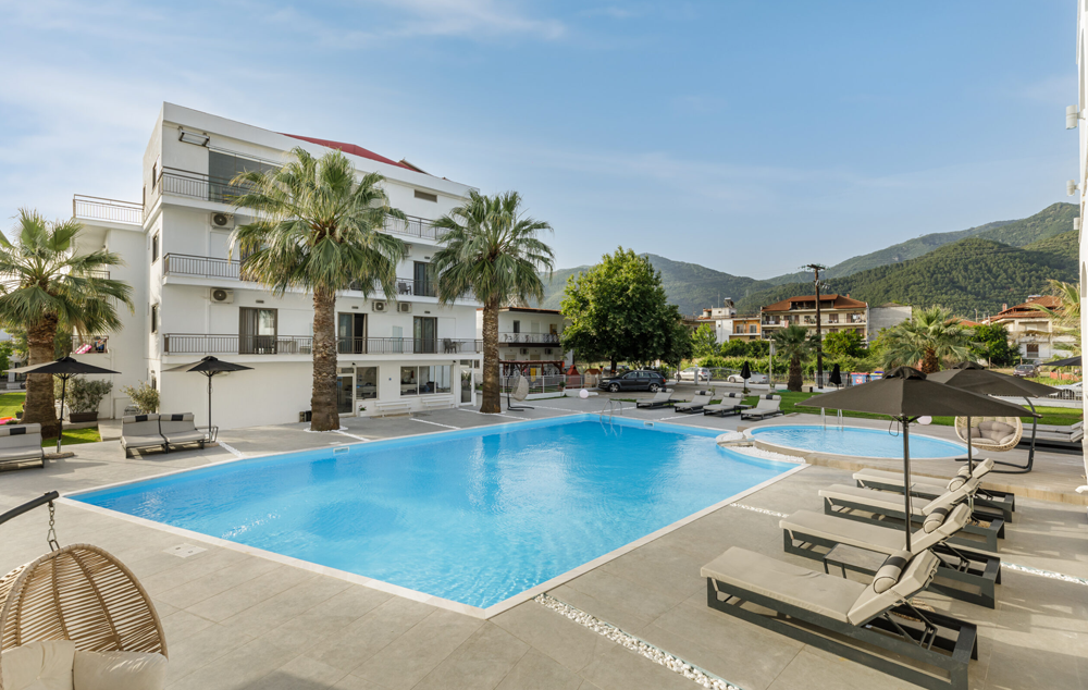 LOKACIJA:Stavros Beach Hotel 3* je smešten u srcu Stavrosa, popularnog letovališta na severu Grčke. Nalazi se na samo 80 metara od plaže.Stavros Beach Hotel se sastoji od dve zgrade, zgrade A (renovirana zdraga) i B, koje se prostiru oko bazena hotela. Renoviran bazen 2022. godine. Zgrada A poseduje superior dvokrevetne-trokrevetne sobe, porodične sobe u prizemlju, junior apartmane sa pogledom na bazen. Standardne sobe hotela su sve u zgradi B.Sve sobe su opremljene TV-om, frižiderom i A/C(klima uključena u cenu), balkon( neke sa pogledom na bazen,a neke sa pogledom na vrt), Wi-fi