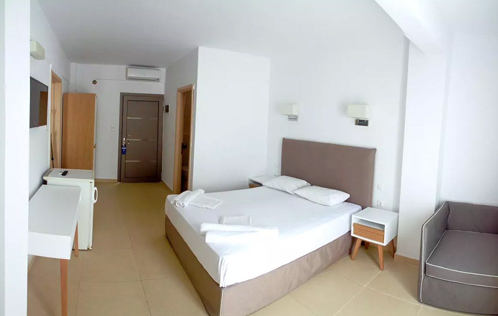 Standard Room for 3 persons-Trokrevetna soba je odlična opcija za porodice sa decom, sa izborom od 3 singl kreveta, ili dvokrevetne i jednokrevetne konfiguracije (u zavisnosti od raspoloživosti). Trokrevetne sobe su jednostavno nameštene i imaju Flat TV, mini frižider, individualno podešenu klima uređaj. Besplatna Wi-Fi internet veza. U svim sobama postoji balkon.