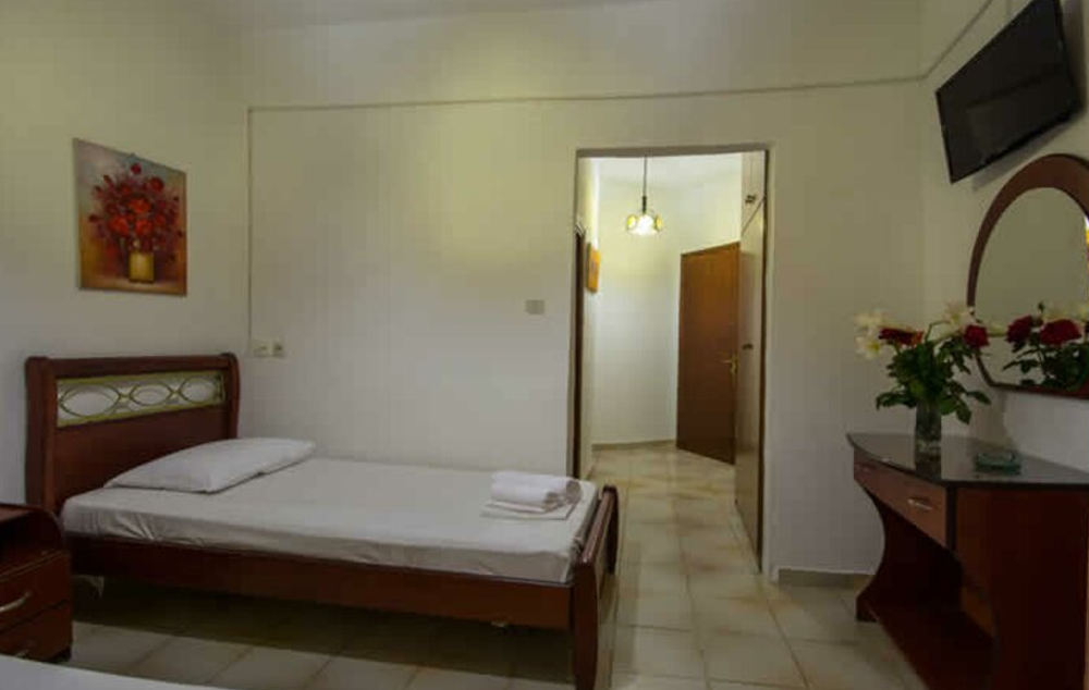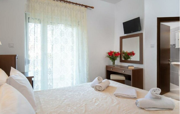 Triple room ground floor-20-22 m2, pogled na vrt, sa jednim bračnim ili dva singl kreveta i jednim singl ili jednim kaučem na razvlačenje, nalazi se u prizemlju, pogodan za 2-3 osobe.
