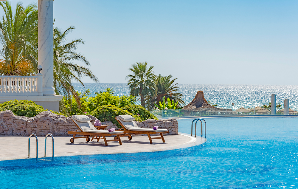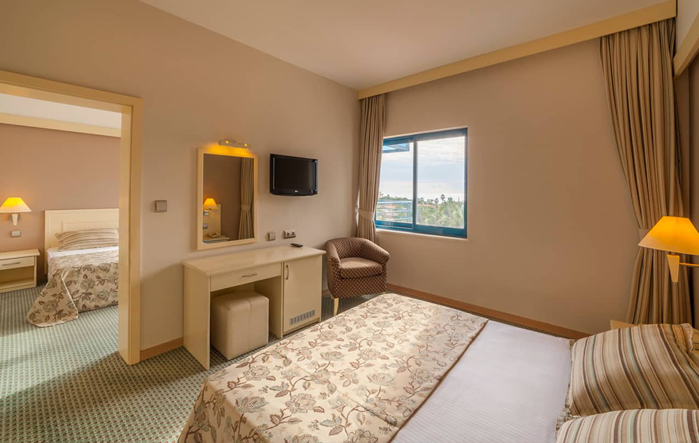 Smeštaj: Hotelski kompleks čine glavna sedmospratna zgrada i pet dvospratnih vila koje imaju ukupno 358 soba. U glavnoj zgradi se nalaze standardne sobe sa pogledom na kopno ili more i porodične sobe, dok se u vilama nalaze vila standardne sobe i vila porodične sobe. Hotel poseduje i sobe za osobe sa posebnim potrebama.