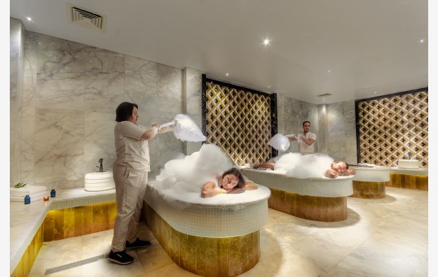 Hotelski sadržaj: Hotel sadrži akva park koji se sastoji od 13 vodenih tobogana spuštajući vas u različite predivne bazene ukupne površine od 5200m. Titanic Royal se može pohvaliti i Welness & SPA centrom sa prostorijama koje su dizajnirane prema najvišim standardima u pogledu komfora i opreme koja odgovara potrebama svakog gosta i koji uključuje 2 parne sobe i 2 saune kao i 3 turska kupatila, VIP đakuzi i salon lepote.