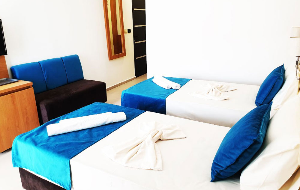 Smeštaj: Raspolažu sa 102 sobe od kojih su većina sa pogledom na more, i 28 apartmana. Sobe zadovoljavaju sve moderne standarde visokog turizma i poseduju tehnologiju pametnih soba. Svaka soba/app ima kupatilo, telefon, SAT TV, klimu, mini bar i balkon..