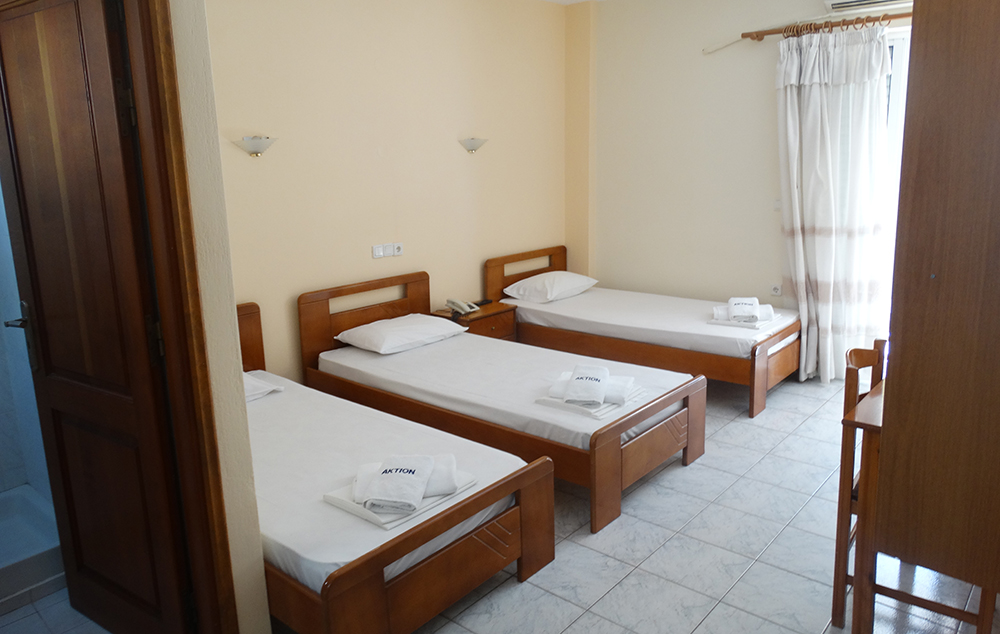 Opis: Smeštajne jedinice u našoj ponudi su dvokrevetni i trokrevetni studiji, kao i jedan promo studio, a nalaze se u prizemlju i na drugom spratu . Svaki studio poseduje opremljen kuhinjski deo, kupatilo/wc, peškire, terasu (osim promo studia), TV, WiFi internet i klima uređaj (uz doplatu na licu mesta od 5€ dnevno). Promo studio nema terasu, već se garnitura za sedenje nalazi u zajedničkom dvorištu.