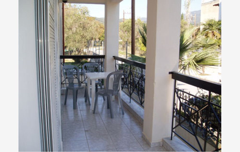 Opis: Poseduje komforna dvokrevetna, trokrevetna i četvorokrevetna studija, smeštena u prizemlju i na prvom spratu. Svaka od smeštajnih jedinica ima opremljen kuhinjski deo, kupatilo/wc, terasu, TV, WiFi internet i klima uređaj (uključena u cenu aranžmana). Vila ima recepciju, a ispred vile je lepo uređen travnjak sa baštenskim garniturama za sedenje, kao i roštilj, koji je gostima na raspolaganju.
