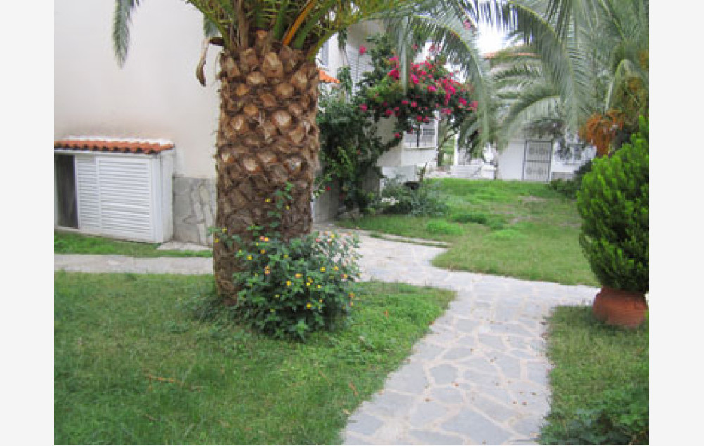 Opis:Sastoji se od glavne zgrade sa recepcijom, lobijem sa kaminom i barom i nekoliko bungalova sa po četiri do šest studija. Bungalovi su smešteni u prelepom, velikom, mediteranskom vrtu sa puno zelenila i cveća u koji se savršeno uklapaju veliki i dečiji bazen, kao i igralište za decu. Zahvaljujući prelepom ambijentu i odličnoj lokaciji u čijoj neposrednoj blizini su prodavnica i pekara, objekat je idealan za porodice sa jednim detetom, kao i parove koji će pronaći tihi kutak u uzavrelom Pefkohoriju.