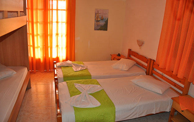Opis: Smeštajne jedinice u našoj ponudi se nalaze u prizemlju i na prvom spratu, sve imaju opremljen kuhinjski deo, kupatilo/wc, terasu, SAT TV, WiFi internet i klima uređaj (uz doplatu na licu mesta, od 6€ dnevno). Svaki dvokrevetni studio ima dva odvojena kreveta, a svaki četvorokrevetni ima dva odvojena kreveta i krevet na sprat.