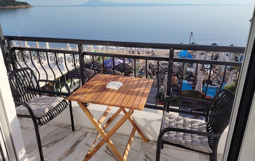 Lokacija: Nalazi se u prvom redu jedne od najlepših plaža Tasosa, Zlatne plaže (Golden beach)