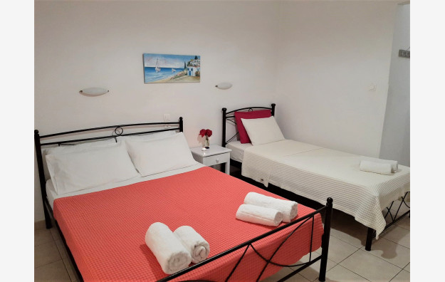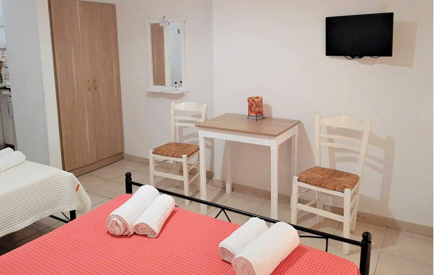 Opis:Na plaži se nalaze po dve ležaljke i suncobran za svaki studio koji su uračunati u cenu. Vila Spitaki se sastoji od studija na prizemlju sa pogledom na dvorište u hladovini loze, u kojem se nalazi veliki zajednički roštilj sa stolovima i stolicama. Studiji su opremljeni klima uredjajem (uračunat u cenu), bežičnim internetom i TV - om. Dvokrevetni, trokrevetni i trokrevetni + 1 studiji sadrže opremljeni kuhinjski deo, francuski ili francuski i standardni ležaj, kao i fotelju na otvaranje, kupatilo i lepu veliku terasu/dvorište sa garniturom za sedenje. Veličina studija je cca 22 - 24 kvm + terasa. Četvorokrevetni studio ima dodatni standardni ležaj i lepu veliku neogradjenu terasu sa garniturom za sedenje. Veličina apartmana je cca 26 kvm + terasa. Vila Spitaki je B+ kategorije, ima peškire i ima mogućnost sopstvenog parkinga. Preporučujemo putnicima koji putuju sopstvenim automobilom.