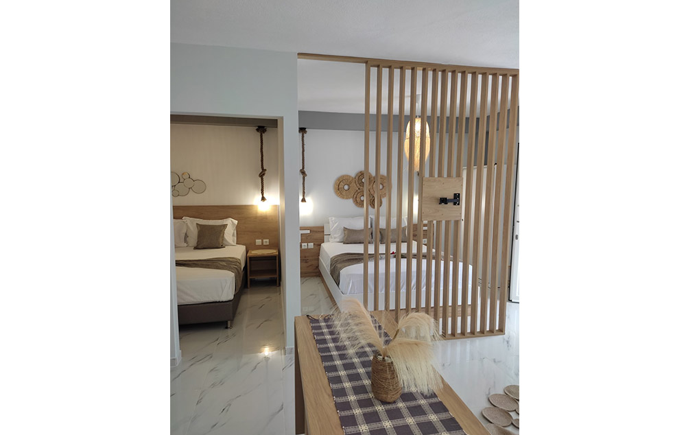 Opis: Vila Tasos u ponudi ima dvokrevetne, trokrevetne i četvorokrevetne studije na visokom prizemlju i drugom spratu. Sve smeštajne jedinice poseduju opremljen kuhinjski deo, kupatilo, terasu, TV, klima uređaj (uz doplatu na licu mesta od 7€ dnevno).