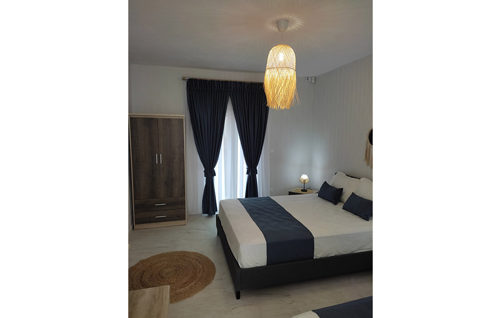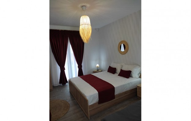OPIS :Sastoji se od apartmana na izdignutom prizemlju sa pogledom ka moru. Opremljeni su wi - fi Internetom, TV – om i klima uredjajem (uz doplatu na licu mesta (opcija), 7 eur dnevno po apartmanu).Trokrevetni apartmani (1/3 APP) sadže kuhinju u kojoj se nalazi jedan standardni ležaj, spavaću sobu sa manjim francuskim ležajem, kupatilo i lepu terasu sa garniturom za sedenje i pogledom na more. Veličina apartmana je cca 18 - 20 kvm + terasa.