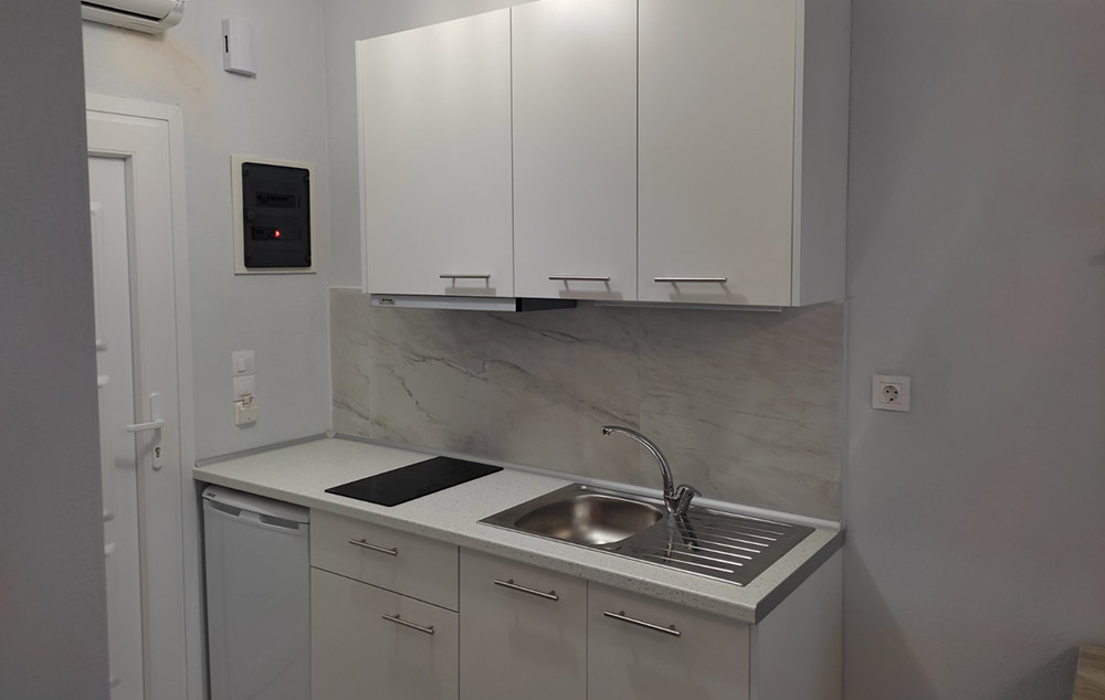 Opis: U našoj ponudi su dvokrevetni I trokrevetni studiji, kao i četvorokrevetni mezoneti. Svaka smeštajna jedinica ima opremljenu kuhinju, kupatilo/wc, terasu, TV, WiFi internet i klima uređaj (uz doplatu na licu mesta od 6€ dnevno).