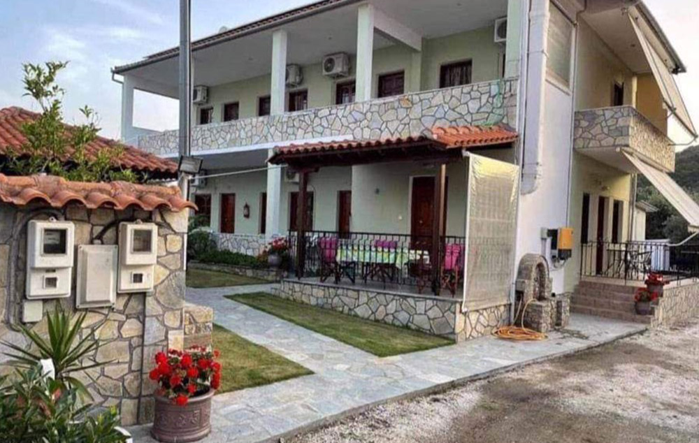 Opis: Poseduje studija namenjena za smeštaj dve do četiri osobe, smeštena u prizemlju i na prvom spratu. Svaka od smeštajnih jedinica ima po dva francuska ležaja po grckim standardima (širine 1.20 ), opremljen kuhinjski deo, kupatilo/wc, terasu, TV,WIFI, A/C, čije se korišćenje naplaćuje 6€ po danu.